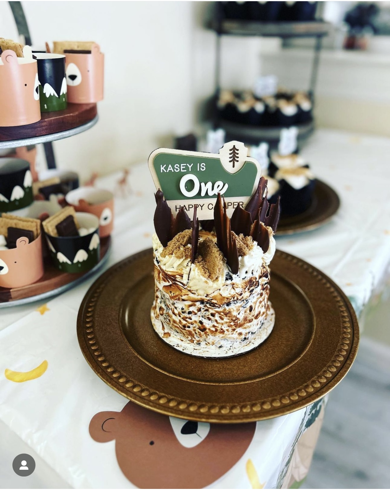 Smores Cake- made of moist chocote cake, fudge chocolate fillings, burned homemade marshmallow frosting, with graham shortbread.
