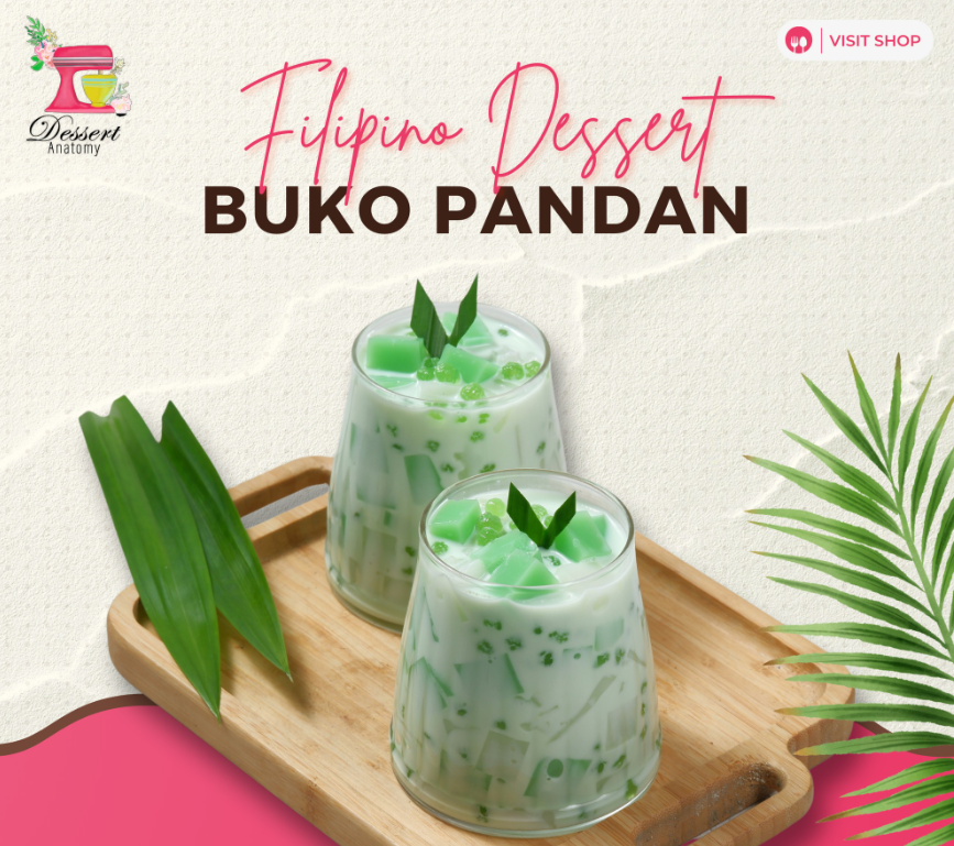 FILIPINO COLD DESSERT MADE OF JELLY CUBES, YOUNG COCONUT AND SWEETENED CREAM INFUSED WITH PANDAN OR SCREWPINE FLAVOR.