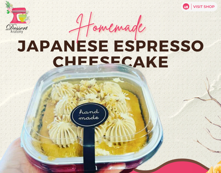 ESPRESSO JAPANESE CHEESECAKE- FLUFFY ESPRESSO FLAVORED CHEESECAKE TOPPED WITH