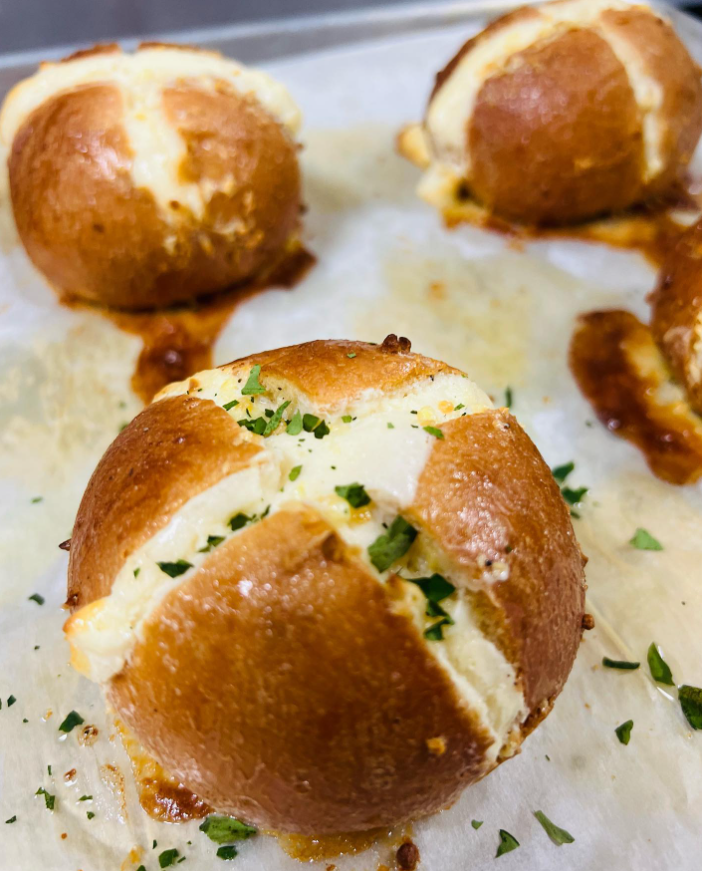 SOFT FLUFFY BREAD ROLL STUFFED WITH CREAM CHEESE FILLING AND DIPPED ON A SAVORY GARLIC BUTTER SPREAD.