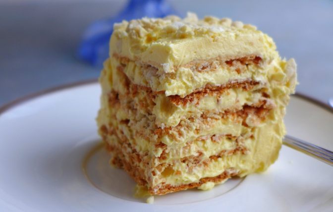 CLASSIC SANSRIVAL- CRISPY MERINGUE LAYERS WITH CASHEW NUTS, WITH VANILLA ITALIAN