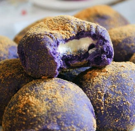SOFT, BUTTERY BRIOCHE BREAD, TOPPED WITH BUTTERCREAM, CHEESE AND UBE JAM- BEST SERVED WARM.